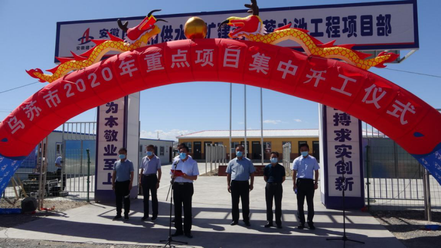 2020年5月28日,烏蘇市2020年重點(diǎn)項目集中開(kāi)工儀式在烏蘇市供水改擴建調節蓄水池工程項目部召開(kāi)。塔城地區地委委員阿依丁·托留汗,烏蘇市政協(xié)黨組書(shū)記王永安,烏蘇市委常委、常務(wù)副市長(cháng)陳斌,塔城地區水利局、國土資源局等相關(guān)部門(mén)領(lǐng)導及項目各參建單位參加開(kāi)工儀式,開(kāi)工儀式由陳斌主持。